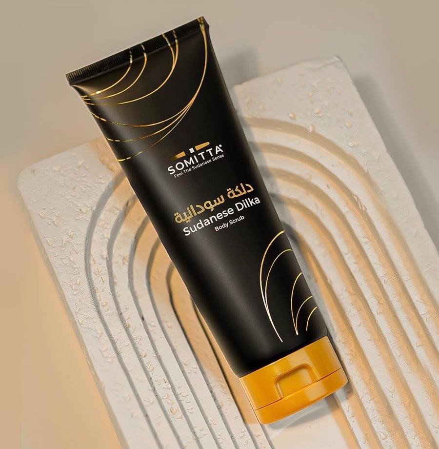 Somitta’s Dilka is inspired by traditional Sudanese beauty rituals. Made with aromatic natural ingredients, it gently removes dead skin, softens the body, boosts circulation, and gradually brightens the skin leaving a luxurious, long-lasting fragrance.